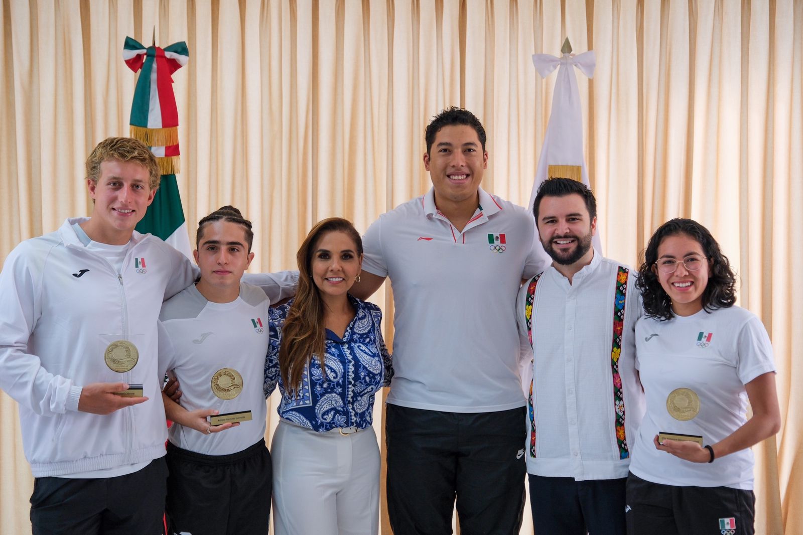 “Nos sentimos muy felices del éxito y el triunfo que han tenido, así como del resto de la delegación mexicana que ocupó el primer lugar en el medallero. Nos sentimos orgullosas y orgullosos de cada uno de ustedes, mujeres y hombres. Eso es lo que queremos consolidar con pasos firmes hacia una transformación y prosperidad compartida. Esa es la meta que nos hemos trazado a través del Nuevo Acuerdo por el Bienestar y Desarrollo de Quintana Roo”, les expresó Mara Lezama.