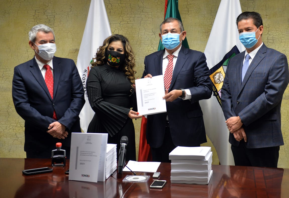Hermosillo, Sonora, Domingo 15 de Noviembre del 2020, poderycrítica.- Con una propuesta sensible ante la realidad que enfrenta Sonora y México, donde se busca atender la necesidad de incrementar el gasto en sectores estratégicos, en específico el sector salud, así como realizar un gasto eficiente que abone a una recuperación acelerada y sostenible de la economía local, el secretario de Hacienda, Raúl Navarro Gallegos, entregó a legisladores locales la propuesta de paquete económico para el ejercicio fiscal 2021.