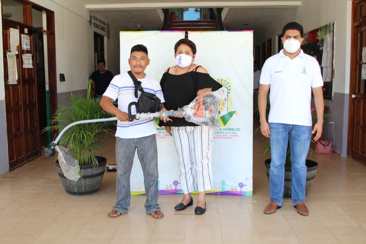 José María Morelos, Q. Roo, Lunes 28 de septiembre del 2020, poderycrítica.- La Presidenta Municipal Sofía Alcocer Alcocer, privilegia el cumplimiento de sus compromisos, este lunes entregó a los habitantes de La Esperanza, una desbrozadora que será de gran utilidad para el mantenimiento y limpieza de las áreas verdes.