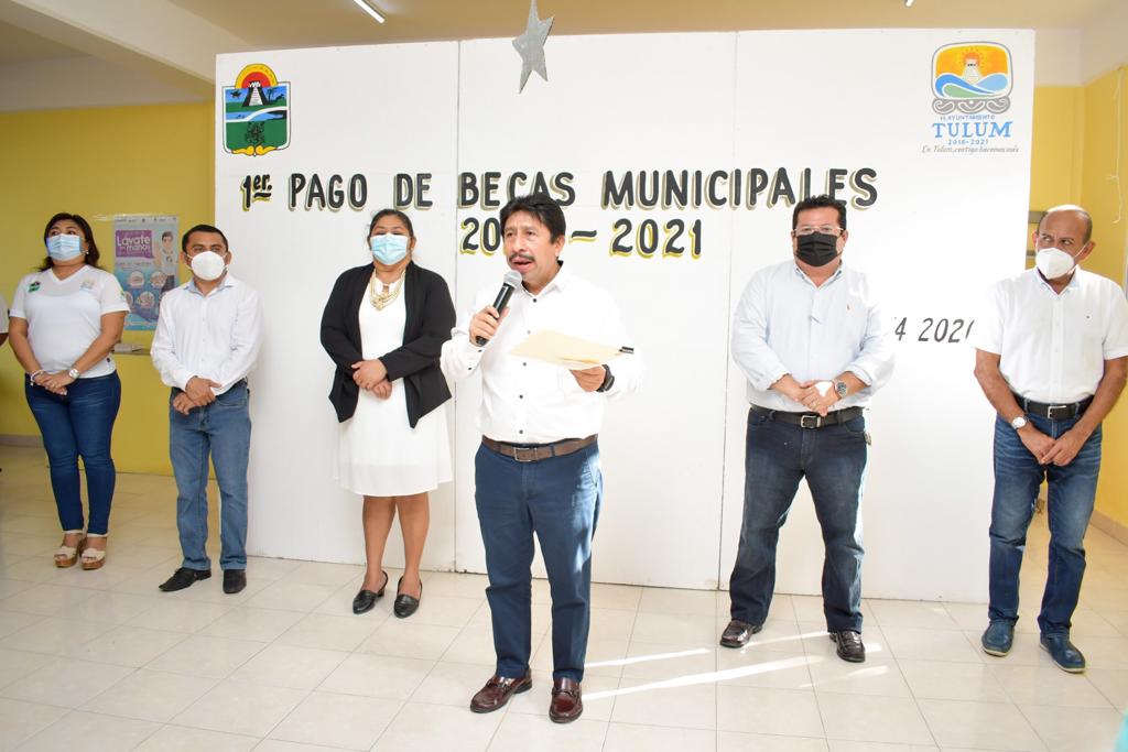 Tulum, Q. Roo, Lunes 14 de Diciembre de 2020, poderycrítica.- Las becas escolares, al igual que la educación, son de los principales rubros y compromisos del presidente municipal de Tulum, Víctor Mas Tah, así lo declaró en la entrega de estos apoyos a los beneficiarios que recibieron el pago de su beca correspondiente a los meses de septiembre, octubre, noviembre y diciembre desde nivel primaria a universidad.
