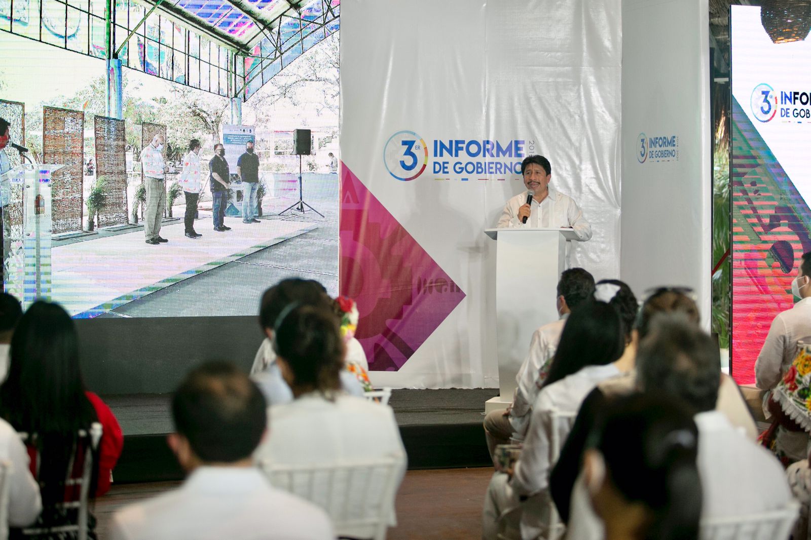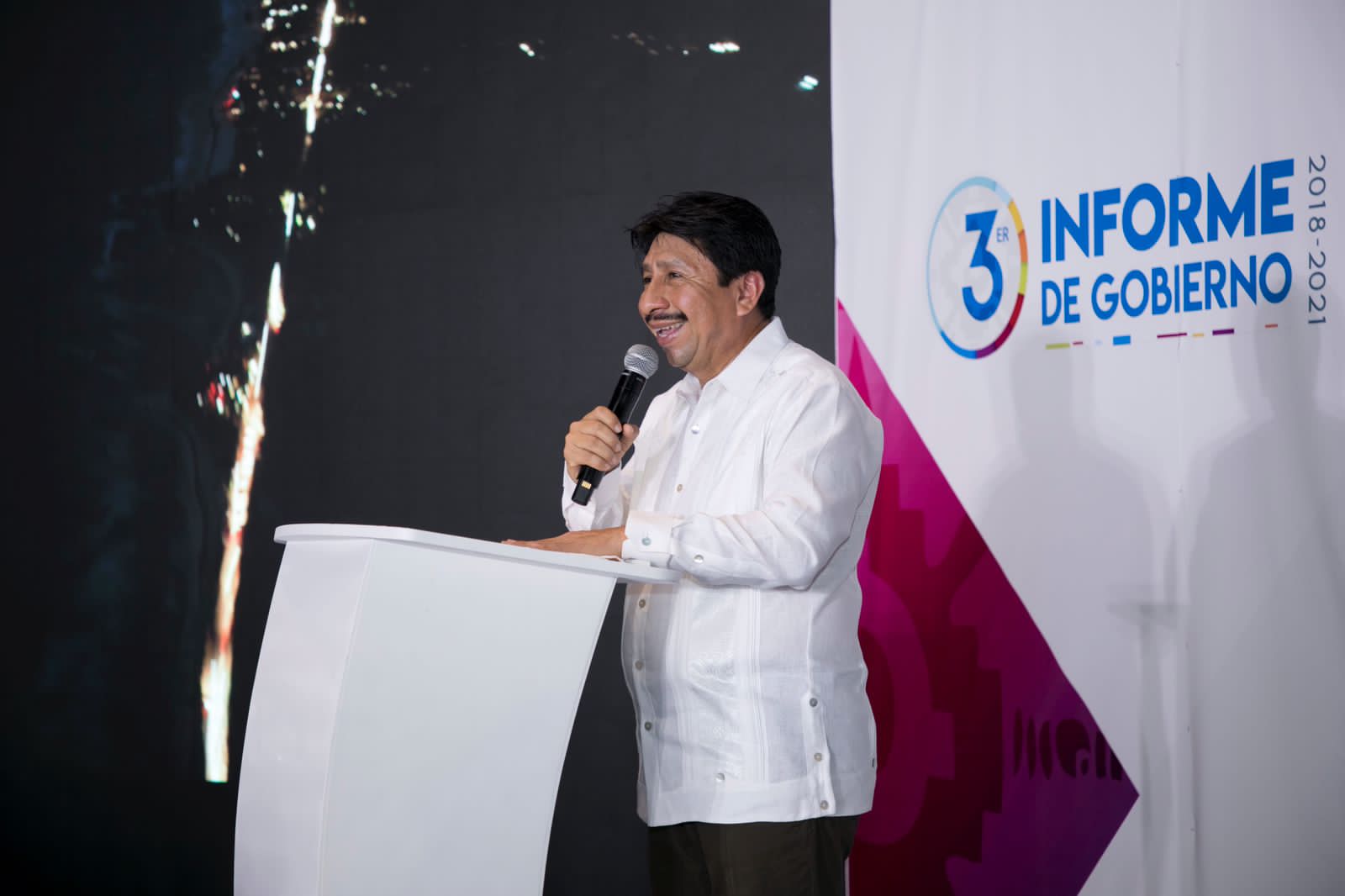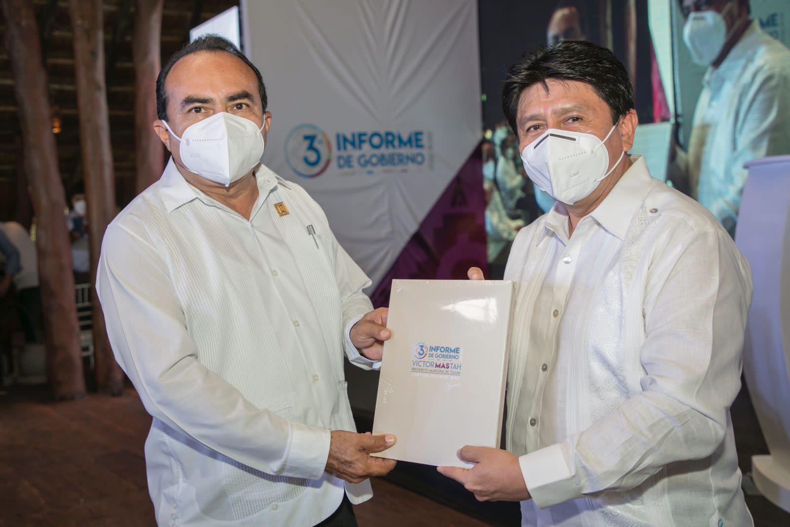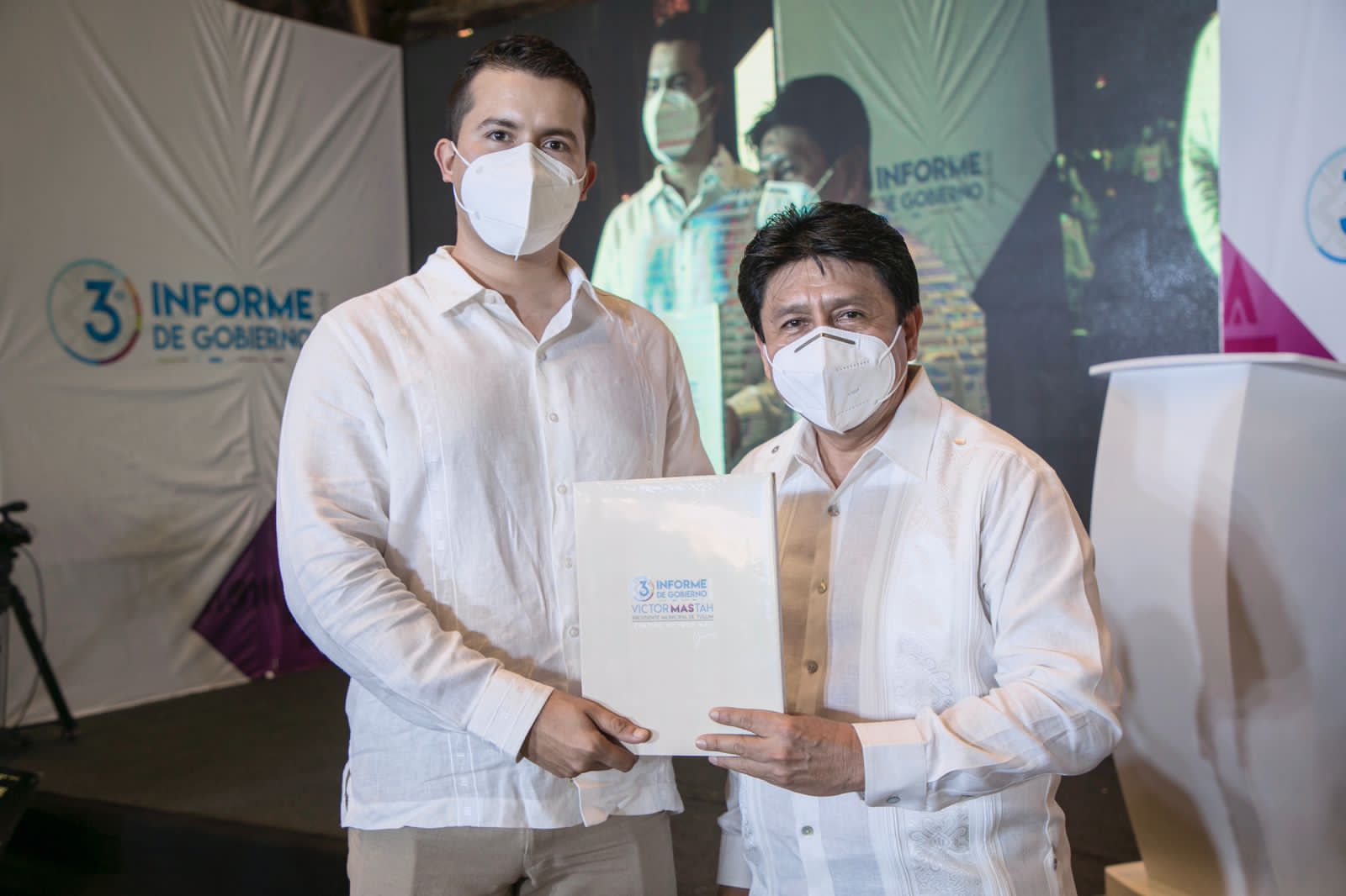 Tulum, Q. Roo, Lunes 13 de Septiembre de 2021, poderycrítica.- El presidente Municipal de Tulum, Víctor Mas Tah, rindió el tercer informe de gobierno de la administración del Ayuntamiento de Tulum 2018-2021, acompañado por el gobernador del estado, Carlos Joaquín González y los regidores integrantes del cabildo, donde destacó el crecimiento del municipio en el rubro de infraestructura, servicios públicos y desarrollo económico mediante el trabajo conjunto con la sociedad para brindar certeza y transparencia en las acciones emprendidas.