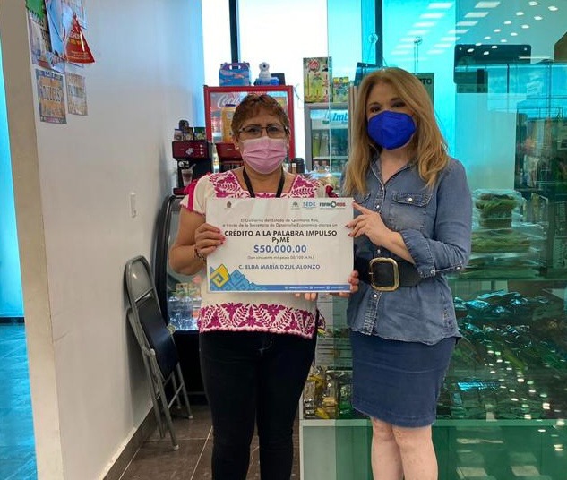 Chetumal, Q. Roo, Martes 09 de Noviembre de 2021, poderycrítica.- Con objetivo de impulsar el crecimiento e innovación de las micro, pequeñas y medianas empresas, Rosa Elena Lozano Vázquez, secretaria de Desarrollo Económico realizó la entrega de cheques del Programa Crédito a la Palabra Impulso PYME, en cada uno de los establecimientos de las beneficiarias, facilitando los apoyos para el sector productivo de la entidad.
