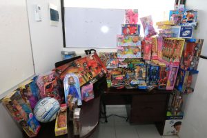 De los Santos Aguilar afirmó que dichos juguetes fueron donados por ciudadanos y por la feria Espectaculares García, los cuales se entregarán al personal de la cárcel y ellos a su vez los repartirán, en un convivio con rifas para los infantes.