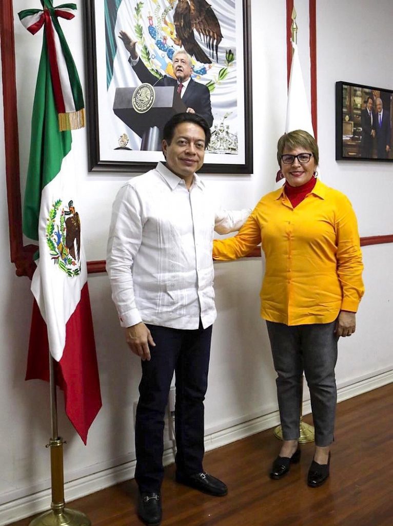 Playa del Carmen, Q. Roo, lunes 30 de Noviembre de 2020, poderycrítica.- En una mesa de trabajo que se prolongó por varias horas, la presidenta municipal de Solidaridad, Laura Beristain Navarrete, junto con su equipo de trabajo, le entregaron a Mario Delgado, líder nacional de Morena, un resumen del trabajo de la gestión que desarrolló en Solidaridad en poco más de dos años de gobierno, así como el certificado del Premio Nacional de Buen Gobierno 2020.