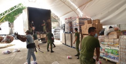 El DIF municipal de Balancán se encuentra a cargo de la entrega de los víveres que constan de 4 mil 875.69 kilos de despensa; 7 mil 628.40 litros de agua purificada para beber, además de ropa, zapatos, kit de aseo personal y de limpieza, pañales, leche para niños medicamentos y artículos de prevención del COVID-19, que este domingo se distribuyen entre los afectados.