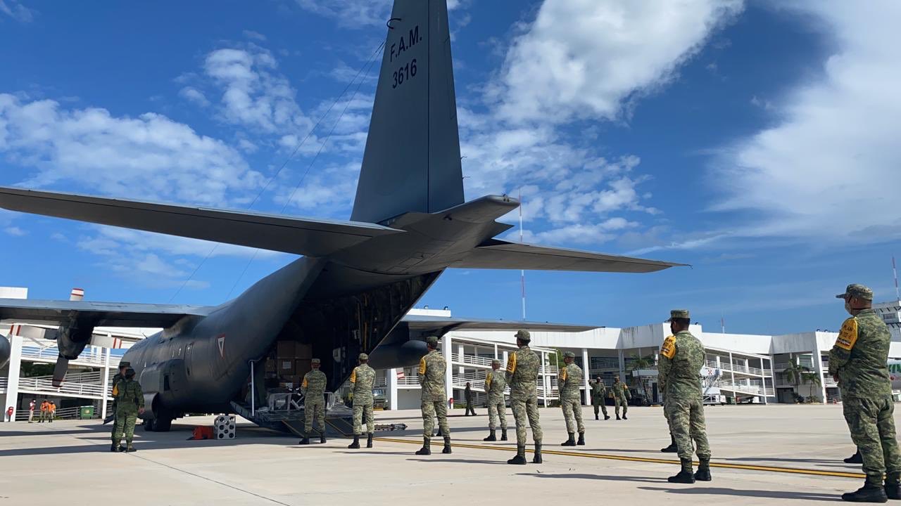 Cancún, mayo 22.- Este día arribó a Cancún un avión de la Fuerza Aérea Mexicana con ayuda que se empleará ante la emergencia por el coronavirus.