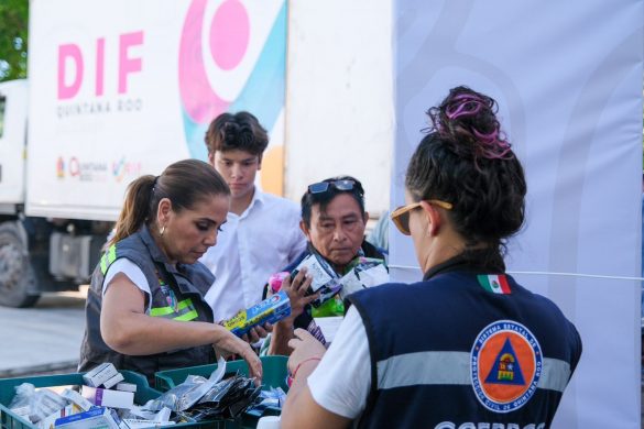 “Estamos aquí trabajando, separando y se están llenando ya los camiones del DIF Quintana Roo, ha trabajado mucha gente, sobre todo la ayuda de muchos ciudadanas y ciudadanos que nos unimos en este México ante la adversidad. De verdad que como México solo hay uno, este país extraordinario, gracias a todas y todos los que ayudan” destacó la gobernadora Mara Lezama.