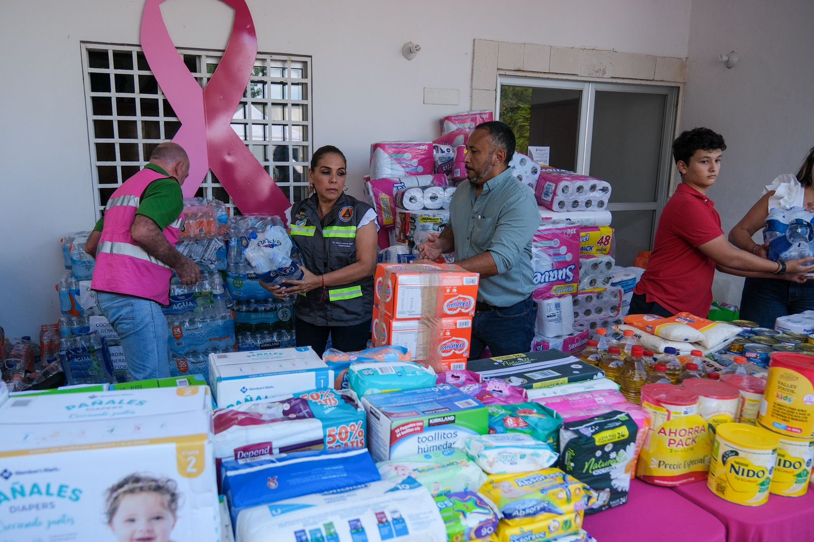La gobernadora de Quintana Roo destacó que se está ordenando cada uno de los productos, como son latería, agua, pañales, medicinas, ropa, artículos de uso personal, pañales infantiles y de adulto mayor, etc., para facilitar su distribución.