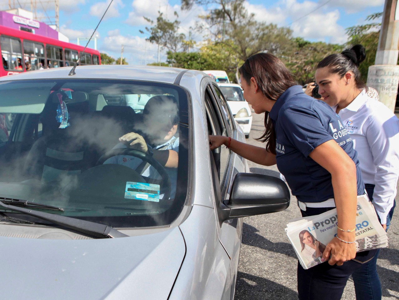 PODER Y CRÍTICA | REDACCIÓN | Es la hora de hacer la diferencia, de hacer el cambio, trabajar por los jóvenes generando calidad de vida, fomentar el arraigo y ampliar condiciones para que tengan mayor acceso a la educación superior, salud, deporte y cultura, fue el mensaje que Laura Fernández, candidata a gobernadora por la coalición Va Por Quintana Roo transmitió durante volanteo en el crucero de avenidas Kabah con Las Torres y Kabah con López Portillo.