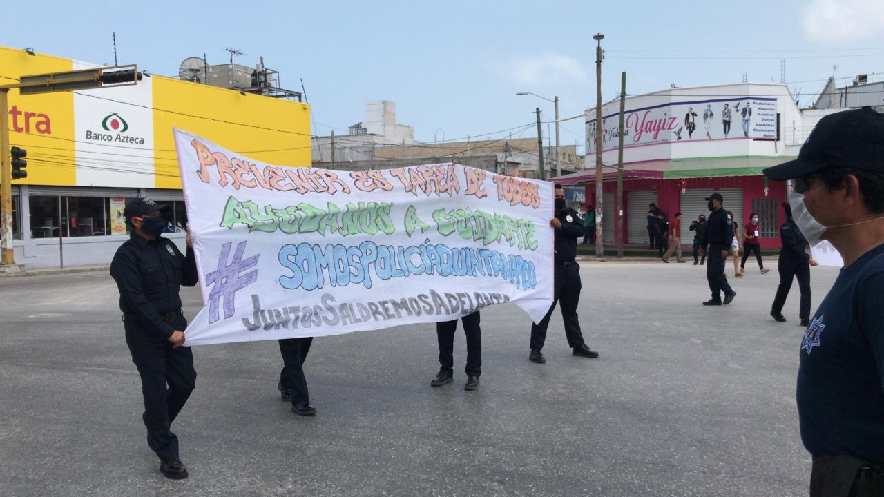 El Escuadrón Azor, brigada que se encarga de los operativos durante la emergencia sanitaria, encabezó la brigada por la zona que es conocida como el Crucero.