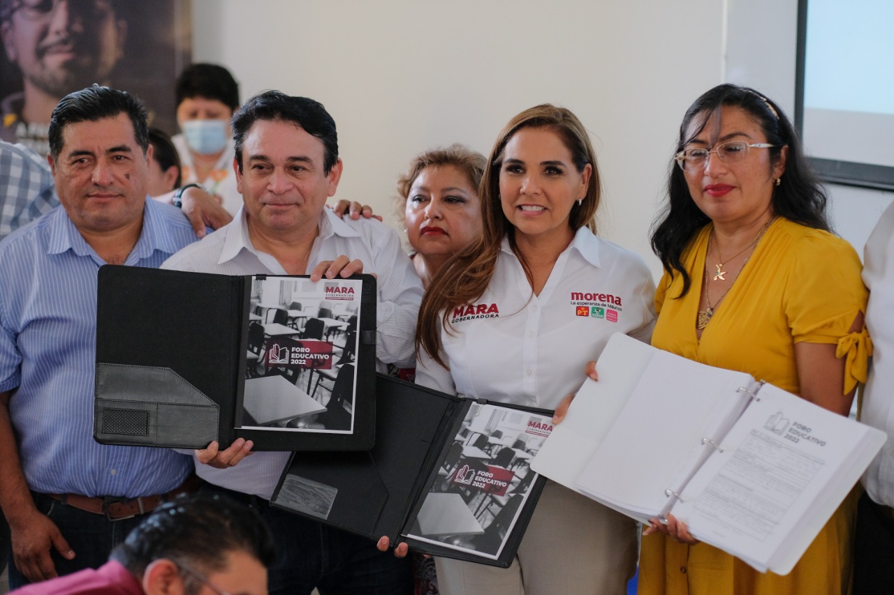 PODER Y CRÍTICA | REDACCIÓN | Mara Lezama, candidata de Morena a la gubernatura recibió hoy por separado las propuestas de los quintanarroenses en materia de educación y cultura, producto de una serie de foros sobre diferentes áreas de la administración pública, las cuales se enriquecerán e integrarán al Plan Estatal de Desarrollo, a fin de generar las políticas públicas más acordes con la realidad y lograr los mejores resultados.
