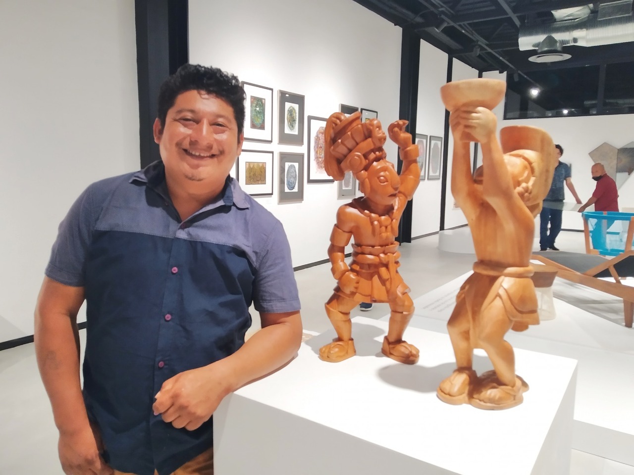 Felipe Carrillo Puerto, Q. Roo, Domingo 20 de Diciembre de 2020, poderycrítica.- El escultor maya José Alberto Poot Chablé logró exponer dos piezas como parte de una colección de ocho esculturas alusivas a los duendes mayas o Aluxes, en una galería de arte contemporáneo de la Universidad Artiiist Academy en Cancún, Quintana Roo.