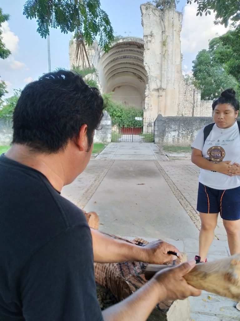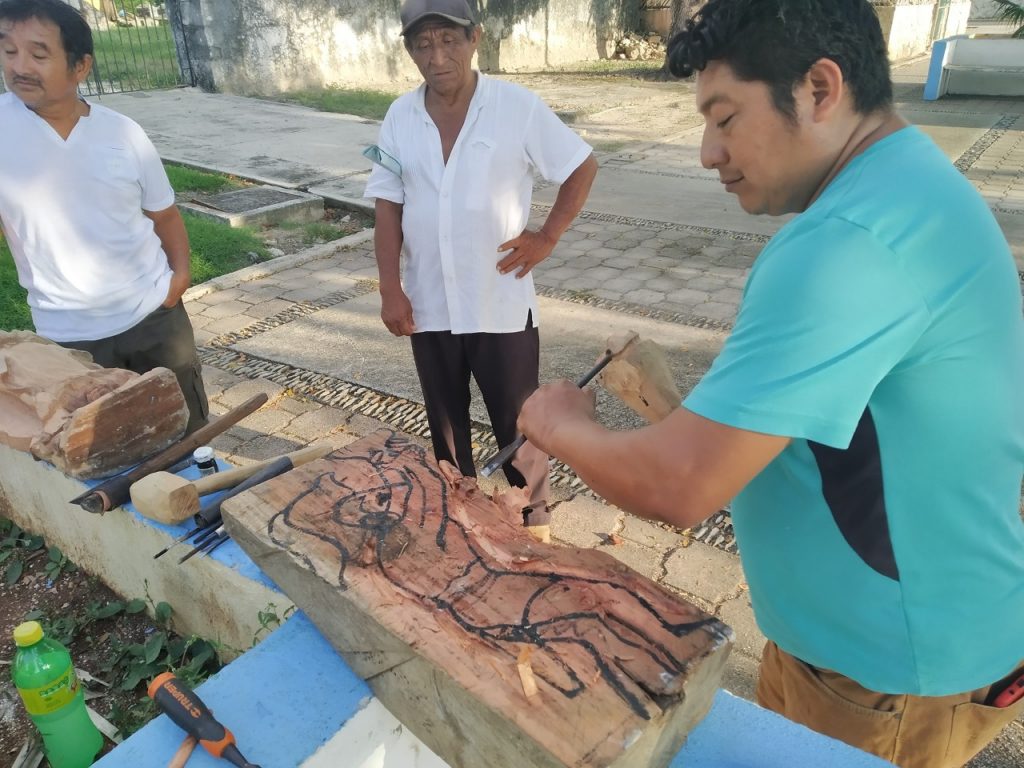 Comúnmente los artistas de Tihosuco realizan sus esculturas en casa, desde dónde se acomodan o desde dónde más les llega la inspiración como es el caso de José Alberto, quien conjuga todas sus habilidades de danzante y creador de música prehispánica para tallar madera de la selva maya y convertirla es magnificas esculturas.