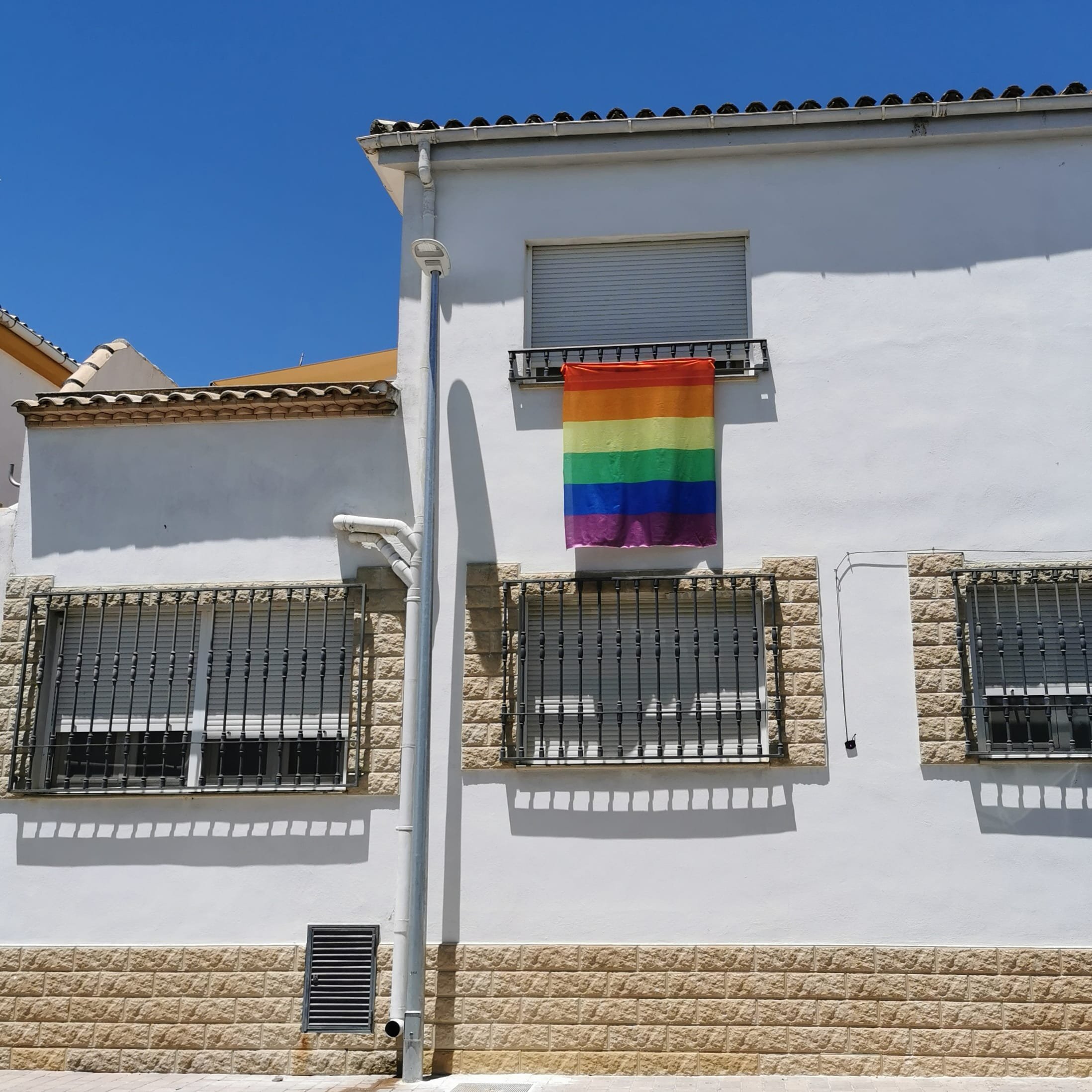 Barcelona, España, junio 28.- Españoles celebraron el día del Orgullo LGBT colgando banderas multicolores en los balcones de sus casas.