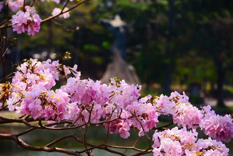 La sorpresiva floración de los Macuilies atrajo a numerosos visitantes al Parque Tomás Garrido y sus alrededores, quienes no dudaron en capturar con sus cámaras la magnífica belleza de estos árboles en plena floración.