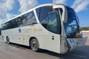Cancún, Q. Roo, Domingo 19 de Septiembre de 2021, poderycrítica.- Un autobús de transporte de personal se estrelló esta mañana en el cruce de la avenida Guayacán, con el libramiento de la carretera Cancún-Mérida, lo que dejó a tres personas lesionadas.