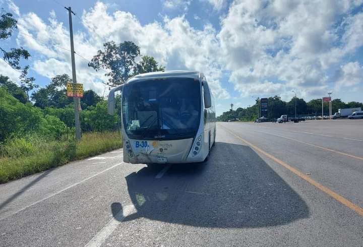 Cancún, Q. Roo, Domingo 19 de Septiembre de 2021, poderycrítica.- Un autobús de transporte de personal se estrelló esta mañana en el cruce de la avenida Guayacán, con el libramiento de la carretera Cancún-Mérida, lo que dejó a tres personas lesionadas.