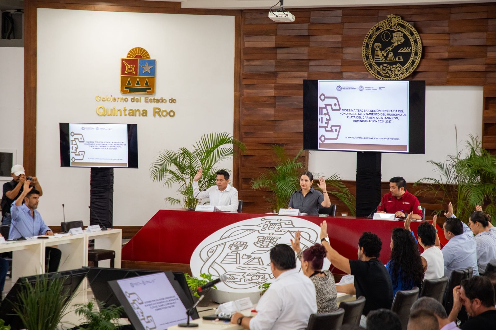 Finalmente, se aprobó la reforma a diversos artículos del Reglamento Orgánico de la Administración Pública Municipal y del Reglamento Interno del Ayuntamiento, con el fin de actualizar la denominación oficial del municipio, cambiando de “Solidaridad” a “Municipio de Playa del Carmen”, en congruencia con la reciente reforma legal.