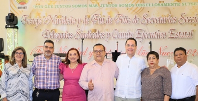 El funcionario estatal encabezó este jueves, con la representación del gobernador Carlos Manuel Merino Campos, el Festejo Navideño y de Fin de Año de Secretarios Seccionales, Delegados Sindicales y Comité Ejecutivo Estatal del Sindicato Único de Trabajadores al Servicio del Estado (SUTSET).
