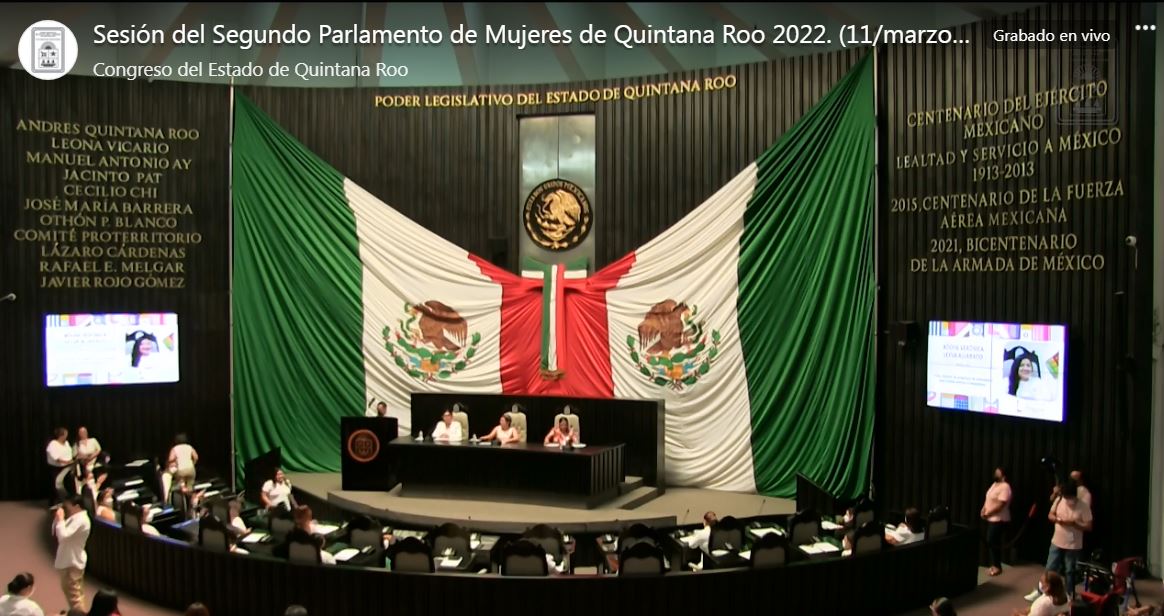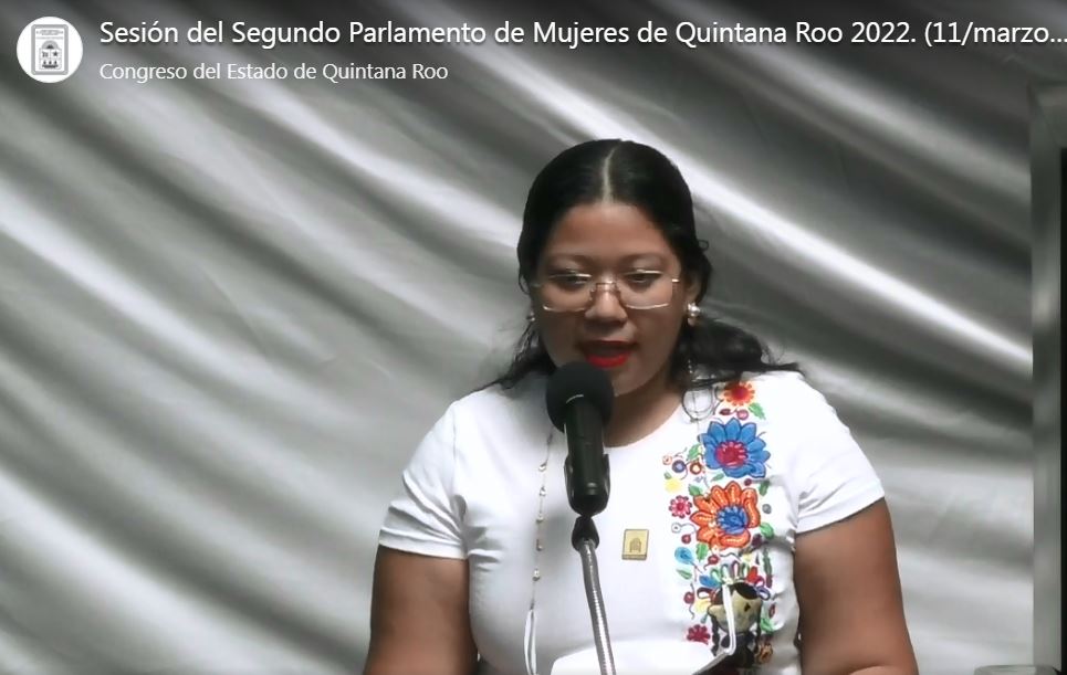 Al ser seleccionada para representar al Distrito IV en el 2° Parlamento de Mujeres de Quintana Roo 2022, en el marco de las actividades por el Día Internacional de la Mujer, la estudiante de la Unicaribe presentó la iniciativa “Reforma de artículos de la Ley de Movilidad del Estado de Quintana Roo para erradicar el acoso sexual en el transporte público”, como parte de la Mesa de trabajo: Violencia contra las mujeres, propuestas para la atención, prevención y erradicación.