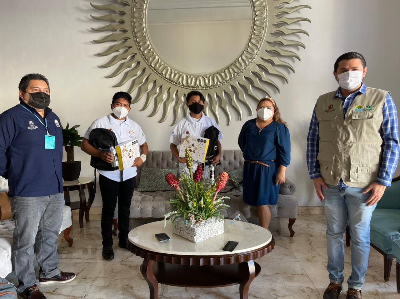 Luis Alfonso Cach Pech y José Iván Rivero Maldonado, son estudiantes de tercer semestre de la carrera de Alimentos y Bebidas y son asesorados por la Docente Clarivel Poot.