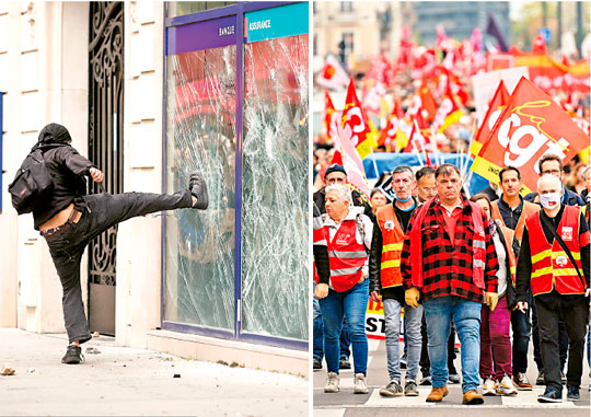 Poder y Crítica| Redacción | En medio del descontento por la in­flación en Francia, ayer miles de personas marcharon para exi­gir aumentos salariales que compensen y soli­darizarse con huelguis­tas de refinerías.