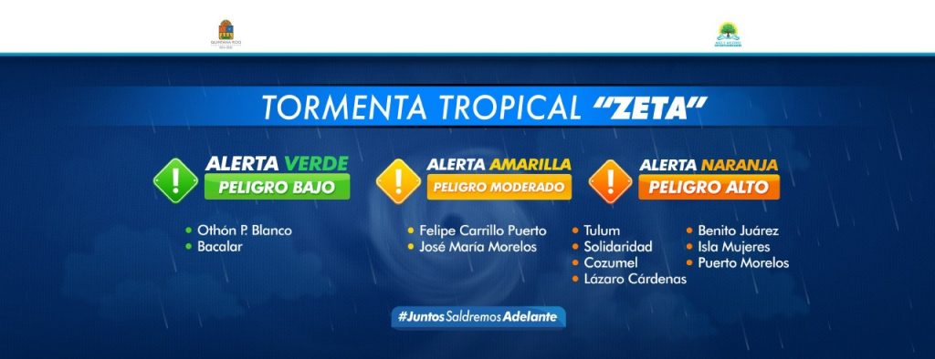 Chetumal, Q. Roo, Lunes 26 de Octubre de 2020, poderycrítica.- El gobernador del estado Carlos Joaquín confirmó que se ha implementado la ley seca en el estado por la cercanía del fenómeno climatológico “Zeta” que afectará como huracán categoría 1. Se ha solicitado la evacuación de algunos puntos en Tulum, Lázaro Cárdenas, Felipe Carrillo Puerto, entre otros. A las 14 horas se detendrán todas las actividades laborales en 7 municipios de la zona norte. Afirmó que podría cortarse la energía eléctrica por varias horas.