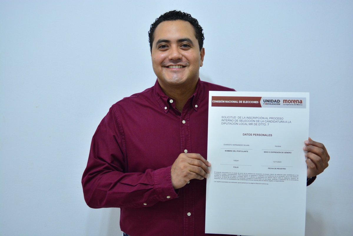 PODER Y CRÍTICA | REDACCIÓN | Por medio de diversas redes sociales, Evaristo Hernández Silvan, hijo del exedil Evaristo Hernández Cruz, anunció su registro para participar en la consulta interna a diputado local por el Distrito VII de Centro.