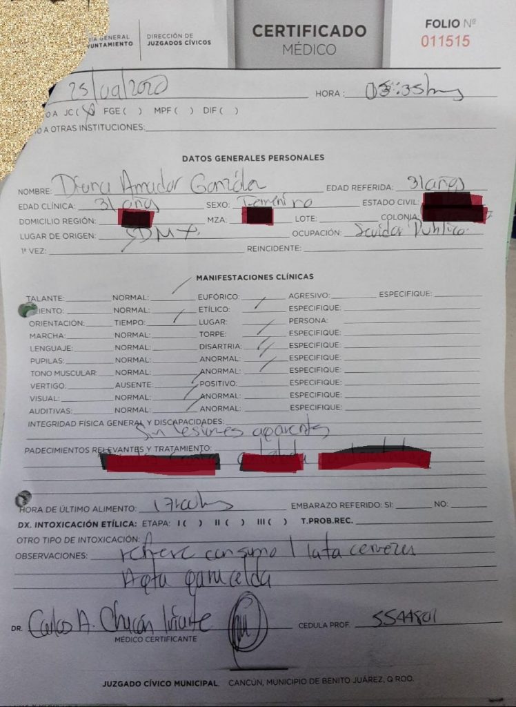Chetumal, Q. Roo, Domingo 04 de Octubre del 2020, poderycrítica.- El pasado 25 de septiembre, Diana Amador González, agente de la Policía de investigación a la que el Fiscal de Quintana Roo, Óscar Montes de Oca Rosales, le asignó un arma aún sin haber pasado los exámenes de control y confianza, iba en estado de ebriedad cuando chocó y volcó una camioneta Hyundai Creta blanca sin placas, según reporta el portal de “Periodismo En Colectivo” (periodismoencolectivo.com)