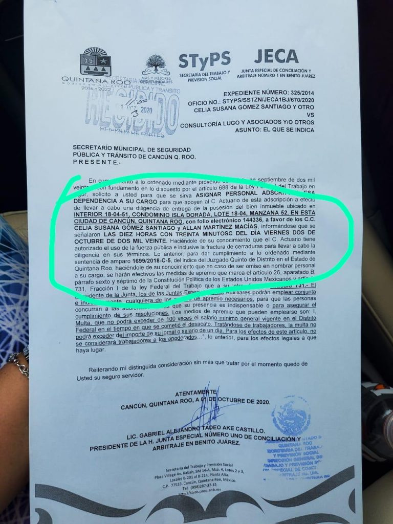 A pesar de todos los elementos, y que se emitió la orden por un Tribunal Colegiado, que es superior a cualquier otro Tribunal, Óscar Montes de Oca creyó que por ostentar el cargo de Fiscal General de Quintana Roo emite un “aseguramiento y siente que el juez federal lo tiene que respetar porque existe una carpeta; se le olvida al Fiscal que cuando se asegura el inmueble se encuentran también litigando en un juicio laboral y en donde existe un amparo, que ya feneció y benefició a una de las partes, él tiene que respetar el debido proceso”.
