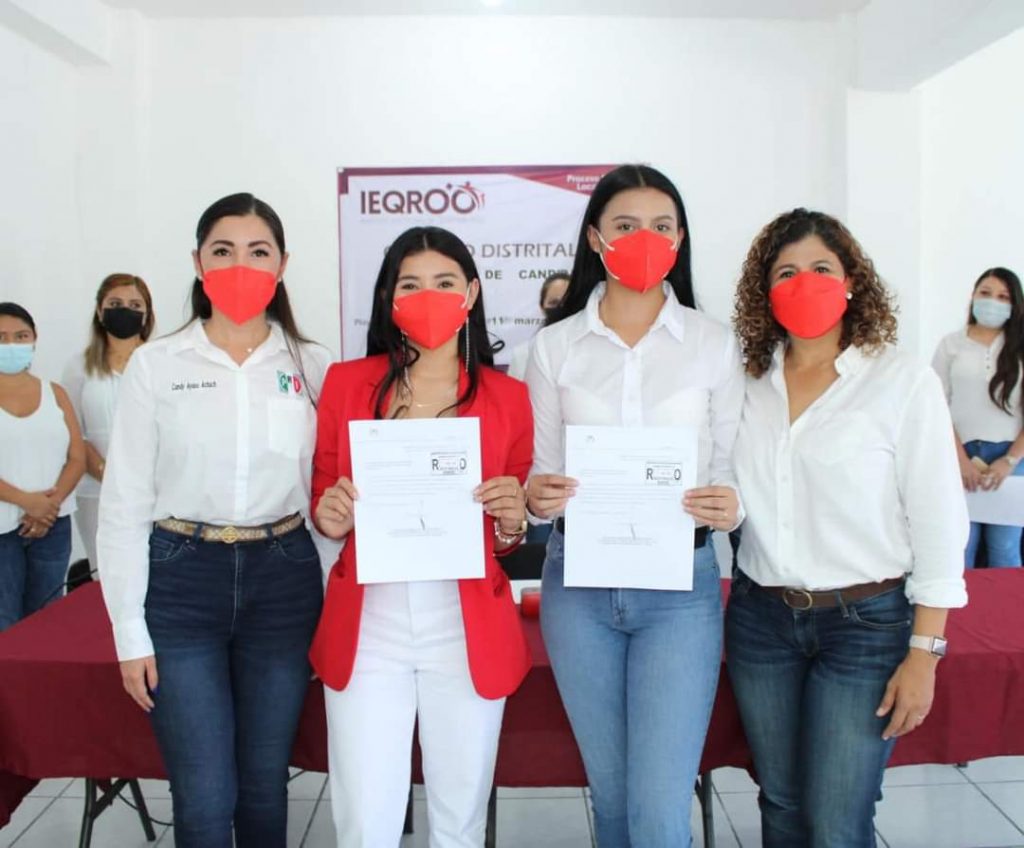 De igual forma en el municipio de Solidaridad, alrededor del mediodía, Karime Hyaraced Castillo Marmolejo y Valeria Guadalupe Nah Pérez, la primera como propietaria y la segunda como suplente, como la fórmula del PRI por el Distrito X.
