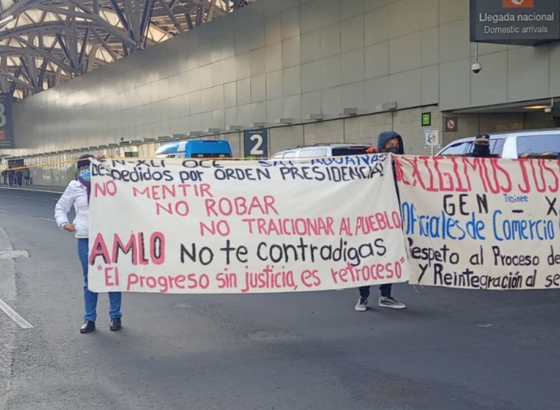 Ciudad de México, Miércoles 10 de Noviembre de 2021, poderycrítica.- Esta mañana extrabajadores del sistema de aduanas mantienen bloqueados los accesos de la Terminal 1 del Aeropuerto Internacional de la Ciudad de México (AICM) para denunciar que fueron despedidos de manera injustificada.