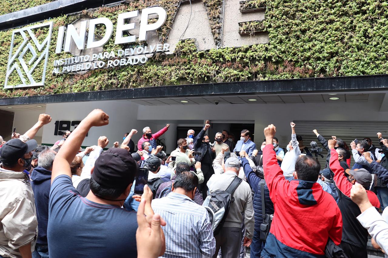 Ciudad de México, Viernes 25 de septiembre del 2020, poderycrítica.- Esta mañana, ex trabajadores de la extinta Luz y Fuerza el Centro, se manifestaron a la entrada del edificio del Instituto para Devolver al Pueblo lo Robado (INDEP), para agradecer al presidente Andrés Manuel López Obrador, la liberación de su Fondo de Vivienda, el cual condona las deudas hipotecarias a 4 mil 870 ex electricistas.