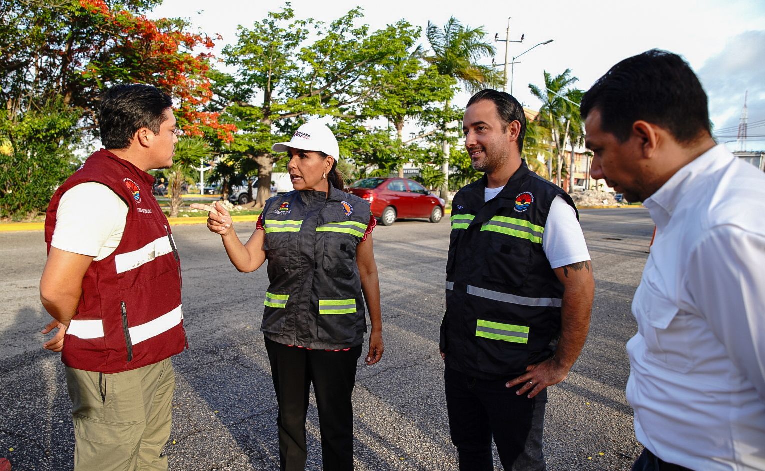 Mara Lezama estuvo acompañada del Encargado de Despacho del Ayuntamiento de Benito Juárez, Pablo Gutiérrez, de Antonio Riveroll Secretario General de Benito Juárez, así como por personal de servicios públicos municipales, a quienes les agradeció este intenso trabajo, pues siempre se está a expensas de las condiciones del clima.