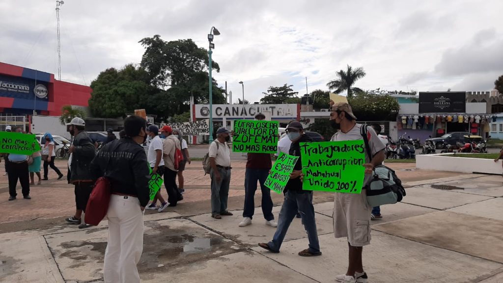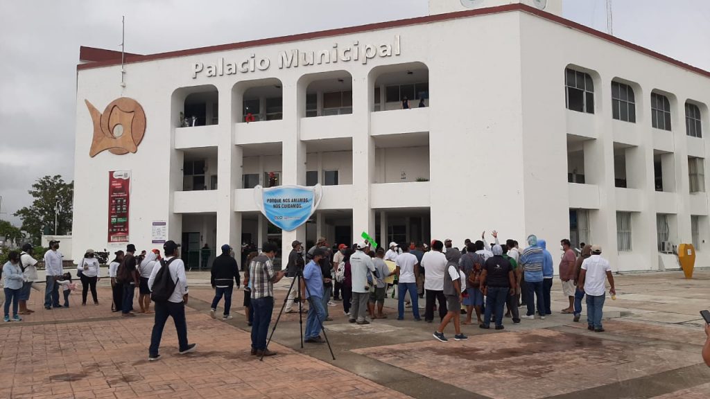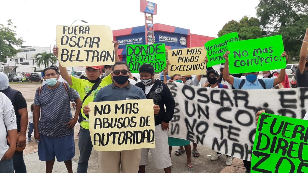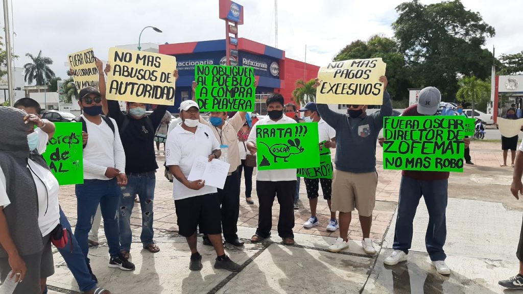 Chetumal, Q. Roo, martes 12 de enero de 2021, poderycrítica.- Más de 70 prestadores de servicios turísticos y venta de artesanías se manifestaron esta mañana frente a las instalaciones del Ayuntamiento de Othón P. Blanco en contra del director de Zofemat, Óscar Hernández Beltrán, por abuso en cobros y entrega de recibos falsos.