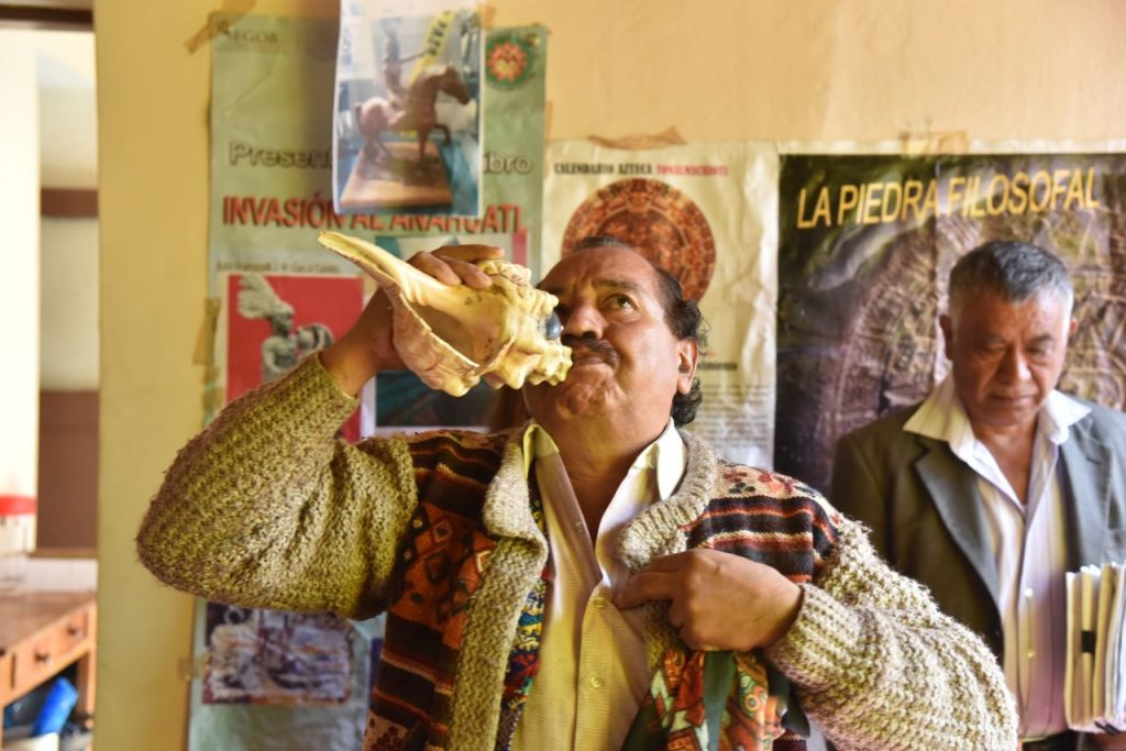 El representante indígena estuvo acompañado por el gobernador indígena de la Ciudad de México, Acamapixtli JM Castillo; el general en retiro Mario Cervantes Muñoz, presidente del Consejo Supremo de la Confederación Nacional de Seguridad y Justicia; Paulino López Jiménez, consejero Mayor Indígena de Xochicuautla; la abogada Hortensia Corona; la representante Piedad Garduño Suárez de Ayotusco y María Estéfany Zavala, de San Francisco Xochicuautla.