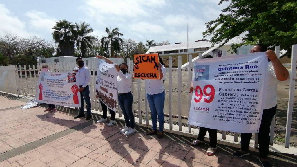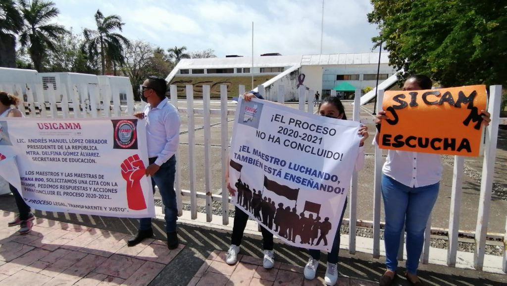 Chetumal, Q. Roo, miércoles 24 de marzo de 2021, poderycrítica. – Un comité de maestros de la Unidad para el Sistema para la Carrera de las Maestras y Maestros, se manifestó contra la titular de la Secretaría de Educación de Quintana Roo (SEQ) Ana Isabel Vásquez Jiménez, exigen evaluación para obtener sus basificaciones.