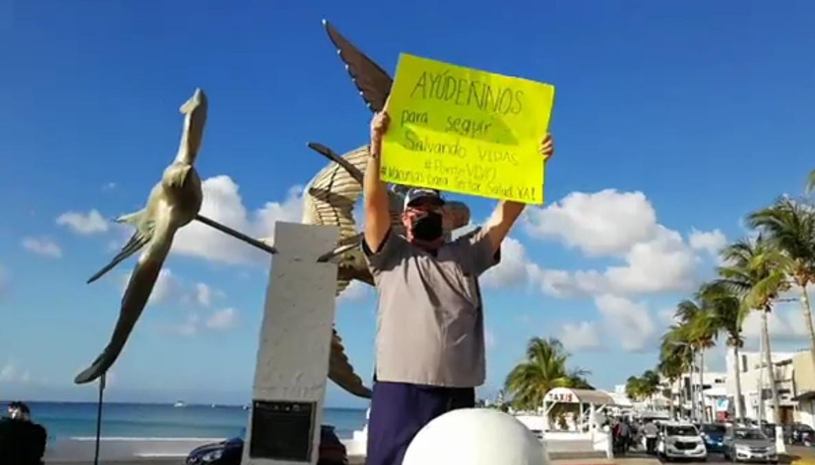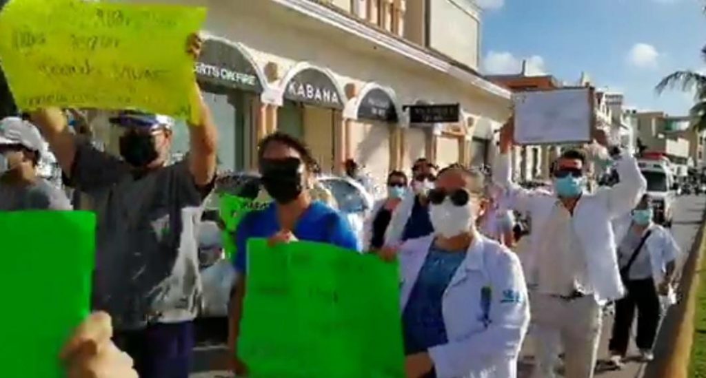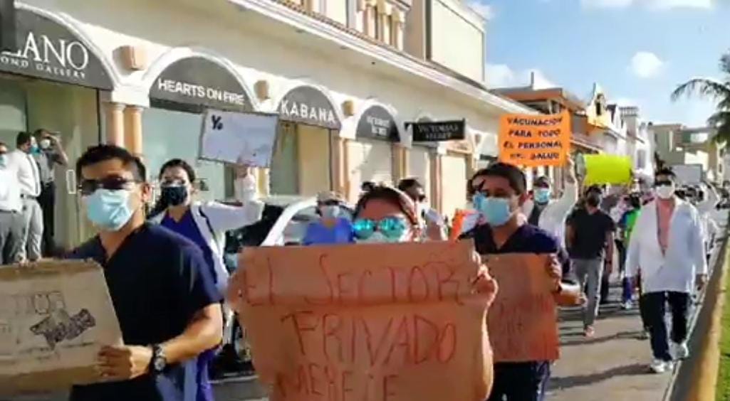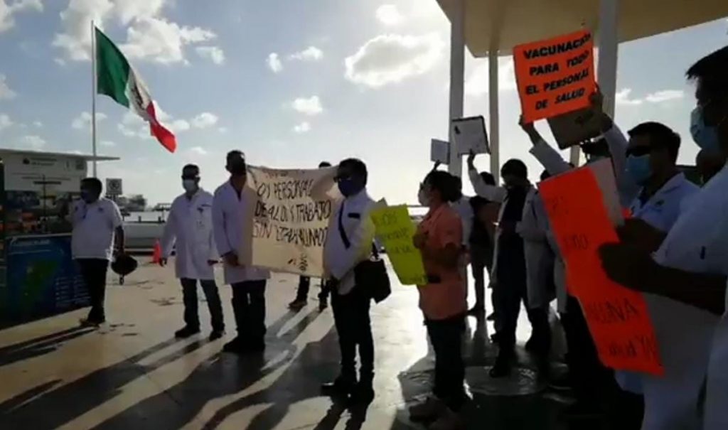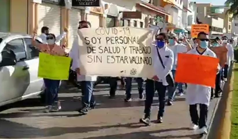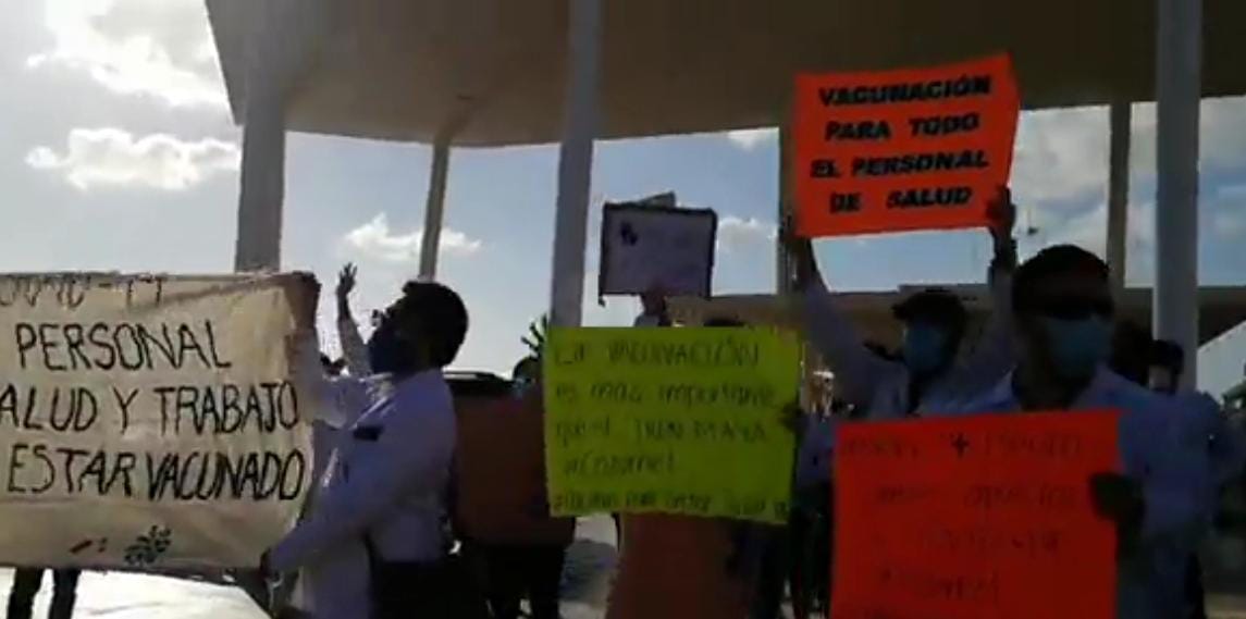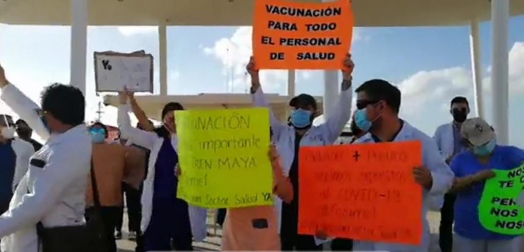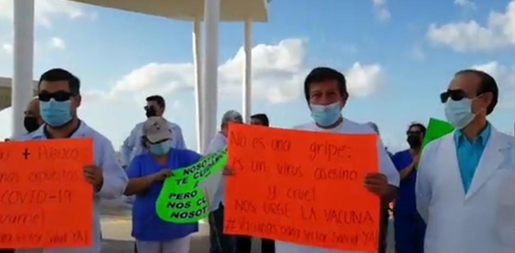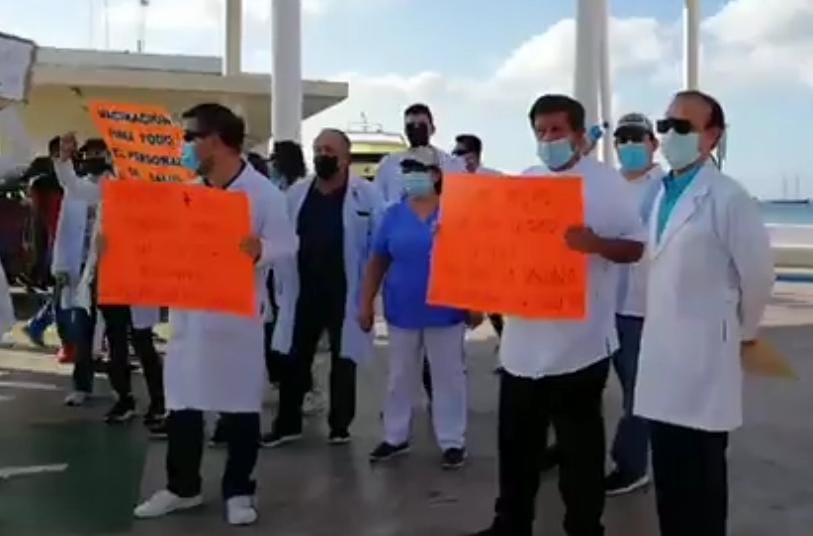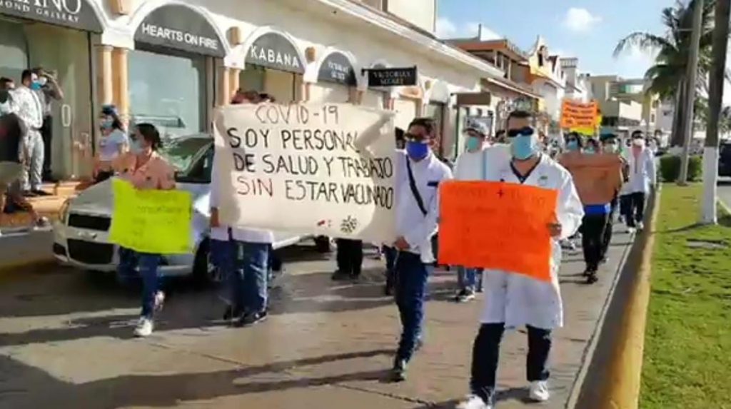 Cozumel, Q. Roo, lunes 29 de marzo de 2021, poderycrítica. – Trabajadores de la salud de la isla de Cozumel que no han sido inmunizados contra el Covid-19, se manifestaron este domingo para exigir ser vacunados.