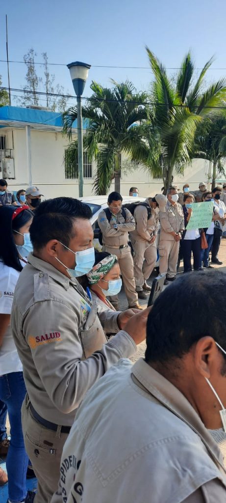 Felipe Carrillo Puerto, Q. Roo, lunes 22 de marzo de 2021, poderycrítica. – Trabajadores de la salud de la Jurisdicción 03, de Felipe Carrillo Puerto, se manifestaron para exigir la vacuna contra el Covid-19. Luego de unos minutos de exigir sus derechos regresaron a sus áreas de trabajo.