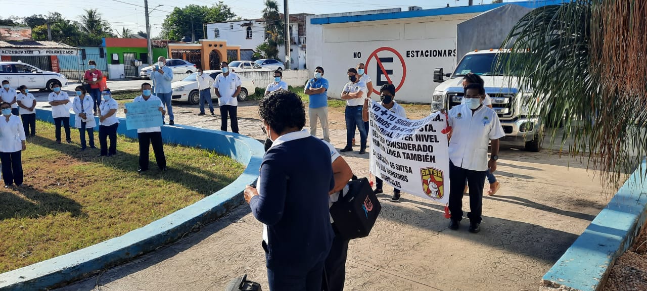 La mañana de hoy empleados de la salud, se manifestaron afuera de su centro laboral, en Felipe Carrillo Puerto, se trata de los afiliados al Sindicato Nacional de los Trabajadores de la Salud (SNTSA) de la Sección 45, de la Jurisdicción 45, quienes piden que se les ponga la vacuna contra el Covid-19.
