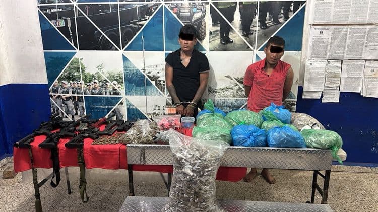 Por otro lado, en la ranchería Lázaro Cárdenas, sector La Gloria, fueron detenidos dos hombres, y se decomisaron tres armas de fuego R-15, una pistola Glock calibre 9 milímetros, 70 cartuchos calibre .223, tres cargadores de R-15, y un cargador de pistola calibre 9 milímetros. Además, se confiscaron 4,483 bolsitas de hierba verde con características similares a la marihuana, así como 8 bolsas con 200 gramos cada una de la misma sustancia. También se incautaron 2,812 bolsitas con una sustancia sólida similar a la cocaína (piedra) y 773 bolsas con una sustancia similar a la metanfetamina (cristal).