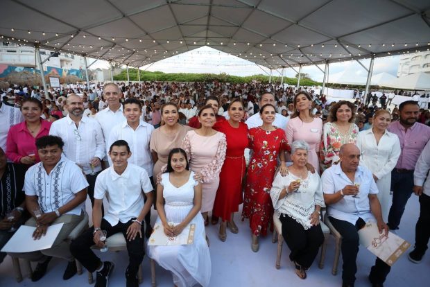 “Estos eventos nos unen, nos dan arraigo, nos dan identidad y nos hacen más fuertes”, destacó. Por su parte, la gobernadora Mara Lezama, expresó palabras de motivación para las parejas, les ofreció sus mejores deseos y felicito a la presidenta municipal Ana patricia Peralta por el gran trabajo que ha estado realizando en beneficio de los cancunenses.