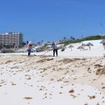La Primera Autoridad Municipal destacó la labor de la Zona Federal Marítimo Terrestre (ZOFEMAT) y la Dirección General de Servicios Públicos, que mantuvieron activos a más de 300 elementos, aunado al equipo y maquinaria utilizada para contribuir al cuidado de los arenales cancunenses.