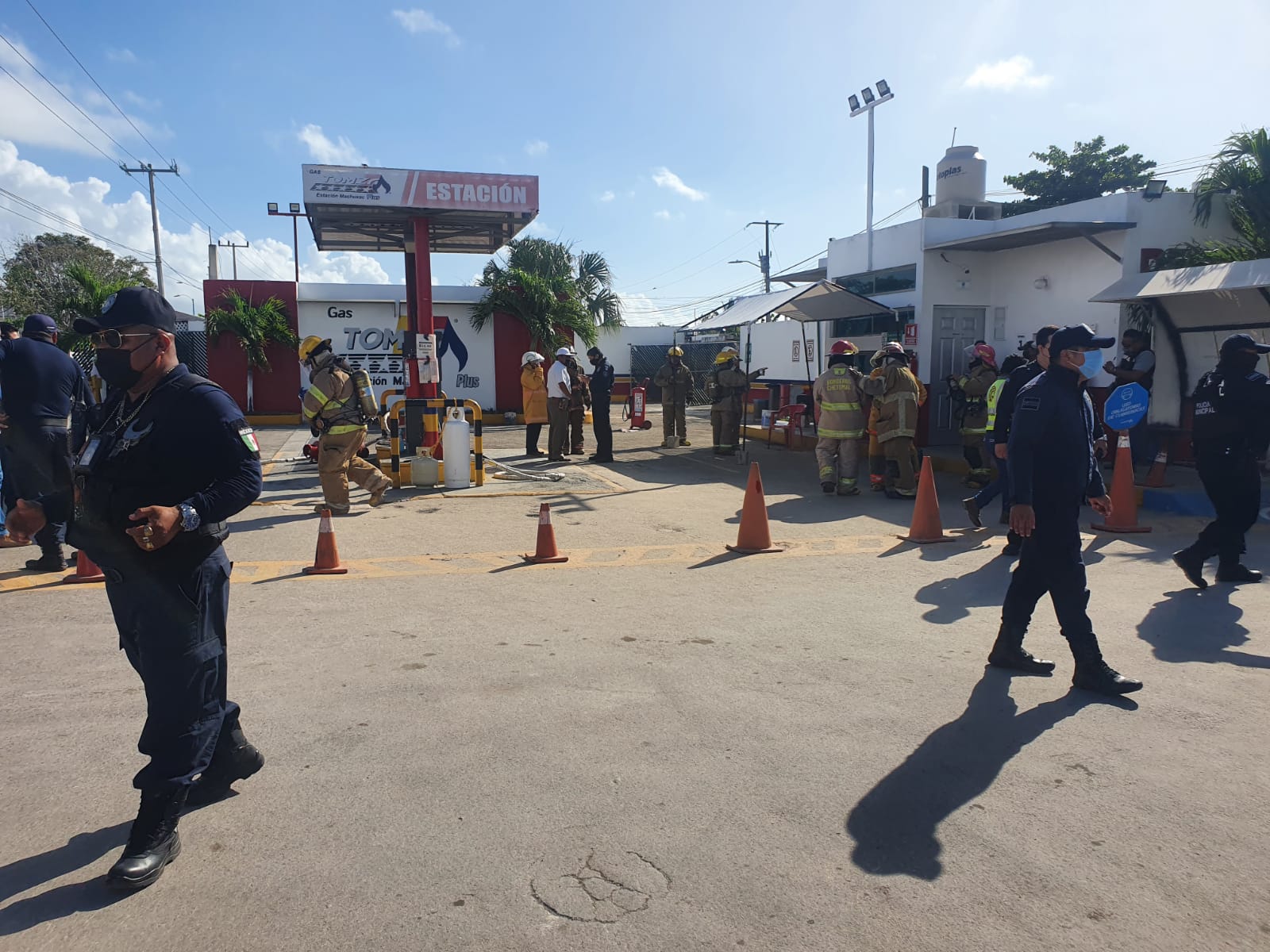 El área rápidamente fue bloqueada y acordonada por la Policía Quintana Roo, al lugar arribó el Heroico Cuerpo de Bomberos que logró controlar la situación, mientras que la ambulancia se llevó al despachador herido.
