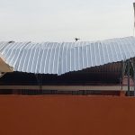 Cabe señalar que el domo presenta torsión en la estructura de polines y ángulo de una pulgada y media, torceduras en láminas, que lo deja como alto riesgo para ser utilizado por maestros y alumnos.