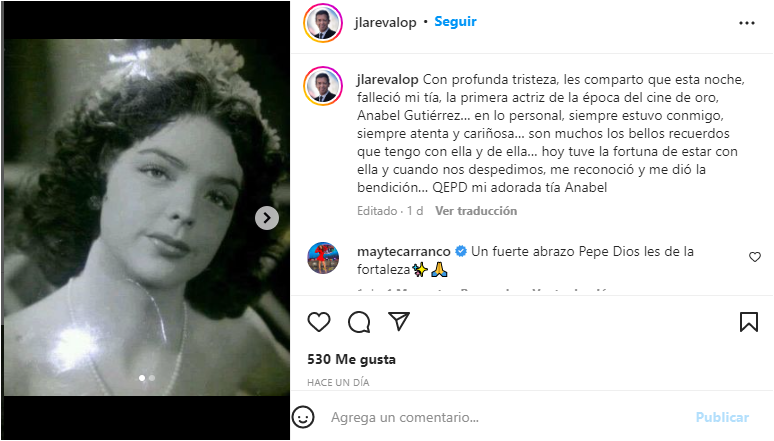 Su sobrino, el periodista José Luis Arévalo fue de los primeros en dar a conocer la noticia del fallecimiento de la también comediante.