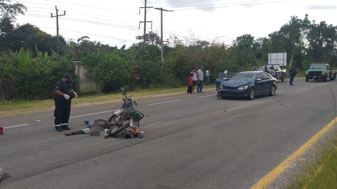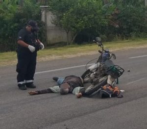 Chetumal, Q. Roo, Viernes 04 de Diciembre del 2020, poderycrítica.- La presunta imprudencia de un motociclista provocó su muerte instantánea en accidente de tránsito en la carretera Chetumal – Bacalar.