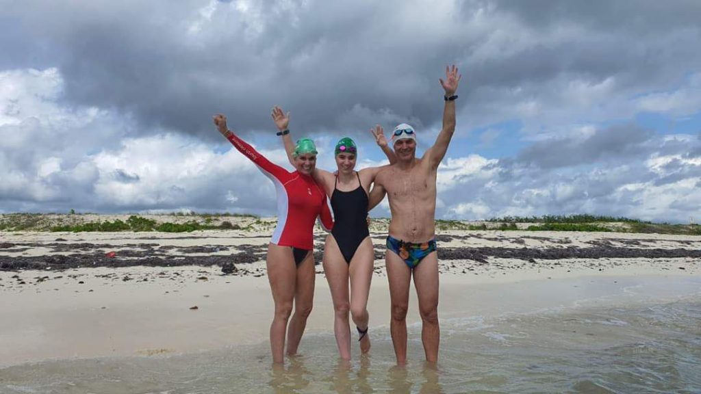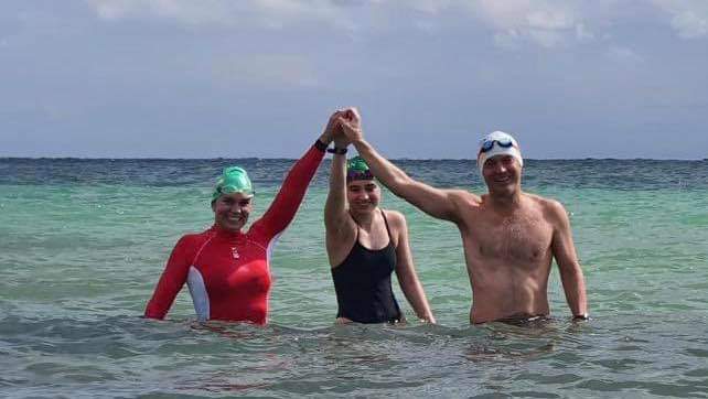 «En una muestra de resistencia y fortaleza Mauricio Prieto, su esposa Susan y su hija Carolina, nadaron desde hotel Presidente de Cozumel a Playa del Carmen, 28.8 kilómetros