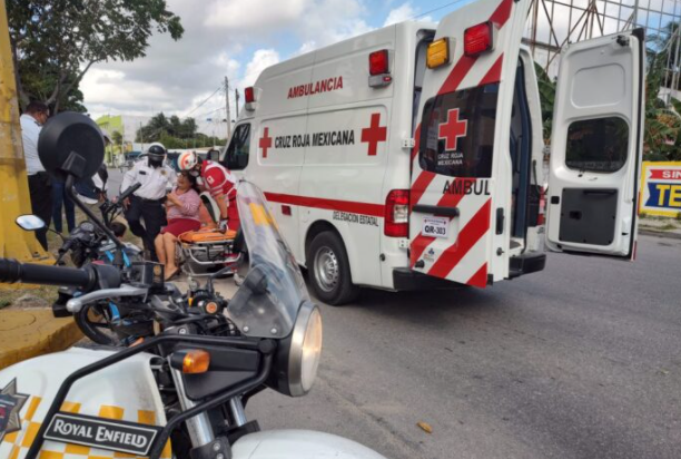 PODER Y CRÍTICA | REDACCIÓN | Una familia fue hospitalizada luego de sufrir un accidente en su motocicleta cuando circulaba sobre la avenida Nichupté con Chacmool, a la altura de la Supermanzana 513.