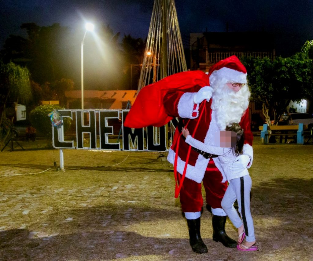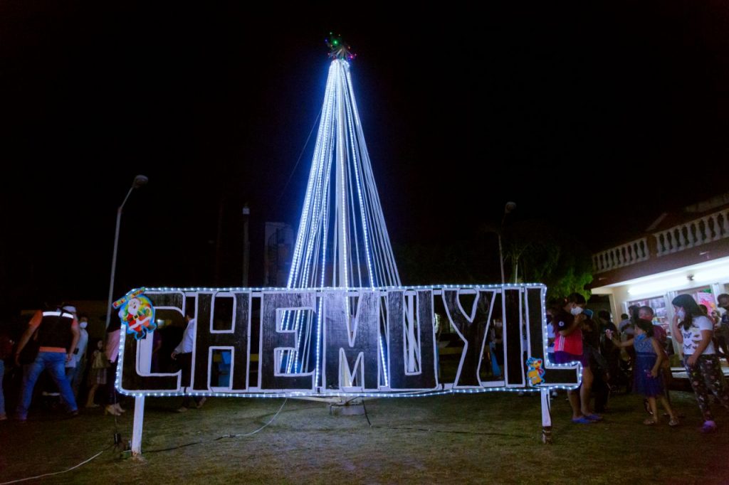 Tulum, Q. Roo, viernes 04 de Diciembre de 2020, poderycrítica. – El encendido del árbol navideño puso el toque de alegría a la delegación de Chemuyil, secundado por decenas de familias y sus hijos que acudieron a ver al personaje de Santa al parque principal de esa localidad, adornado para la ocasión por personal de la Dirección de Servicios Públicos municipales de Tulum.